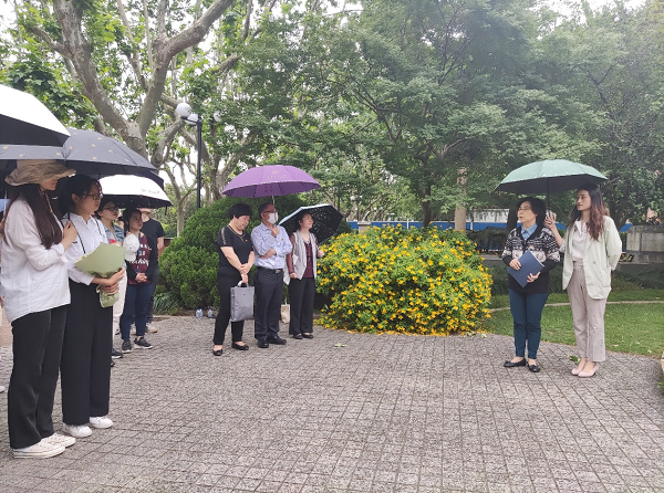 首先,党员们来到史霄雯、穆汉祥两位烈士墓,缅怀两位先烈,即使天下起了雨,依然没有阻挡党员学习先烈精神的的热情。首先,张斌老师为大家详细讲解了史霄雯、穆汉祥两位烈士事迹介绍。其中史霄雯烈士是1945级交大化学系的校友,他考入交大后,一直刻苦钻研,帮助他人,承办《雄风》科普杂志,加入中国技术协会,受到中共党员的帮助和启蒙。听到史霄雯学长作为系科代表,于“贾子干事件”中与美方激烈谈判,据理力争维护国人尊严之时,同学们自豪万分;1949年5月20日,史穆二烈士在上海解放前夜壮烈牺牲。听到史霄雯学长在白色恐怖时期坚守岗位,不幸被捕遇害之时,同学们扼腕叹息,难过不已。张老师鼓励党员们铭记,是先烈们在国家需要的时候勇于献出自己的生命,才换来革命的胜利与新中国的成立,并为我们今天的幸福生活开天辟地!