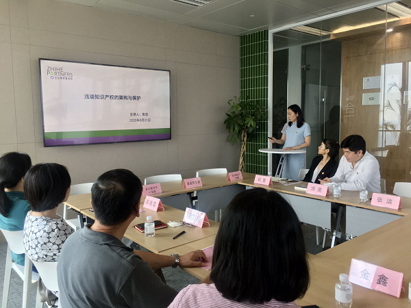 随后,至合律所张洁律师作了《浅谈知识产权的架构和保护》的辅导报告,从知识产权、专利、商业秘密、技术转化等多个角度进行了探讨,重点介绍了知识产权或技术转让过程中在法律层面需要注意的事项。