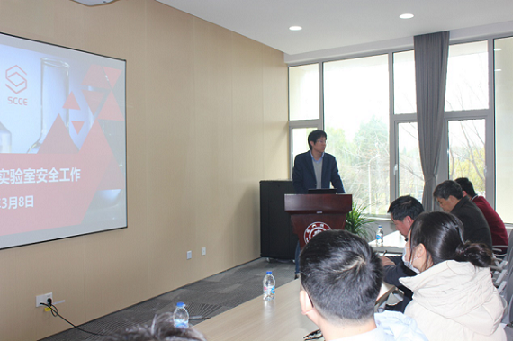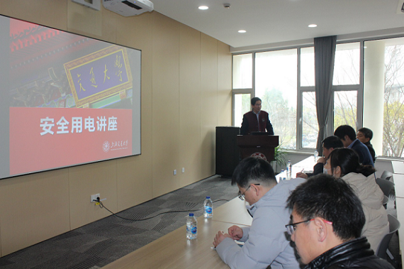 会上,邀请学校动力科沈海军老师,作了以《安全用电讲座》为主题的专项培训。讲座图文并茂、通俗易懂,进一步扩展了师生的实验室用电常识、提高了安全用电意识,警示了实验室用电可能存在的安全隐患,以避免实验室用电事故的发生。