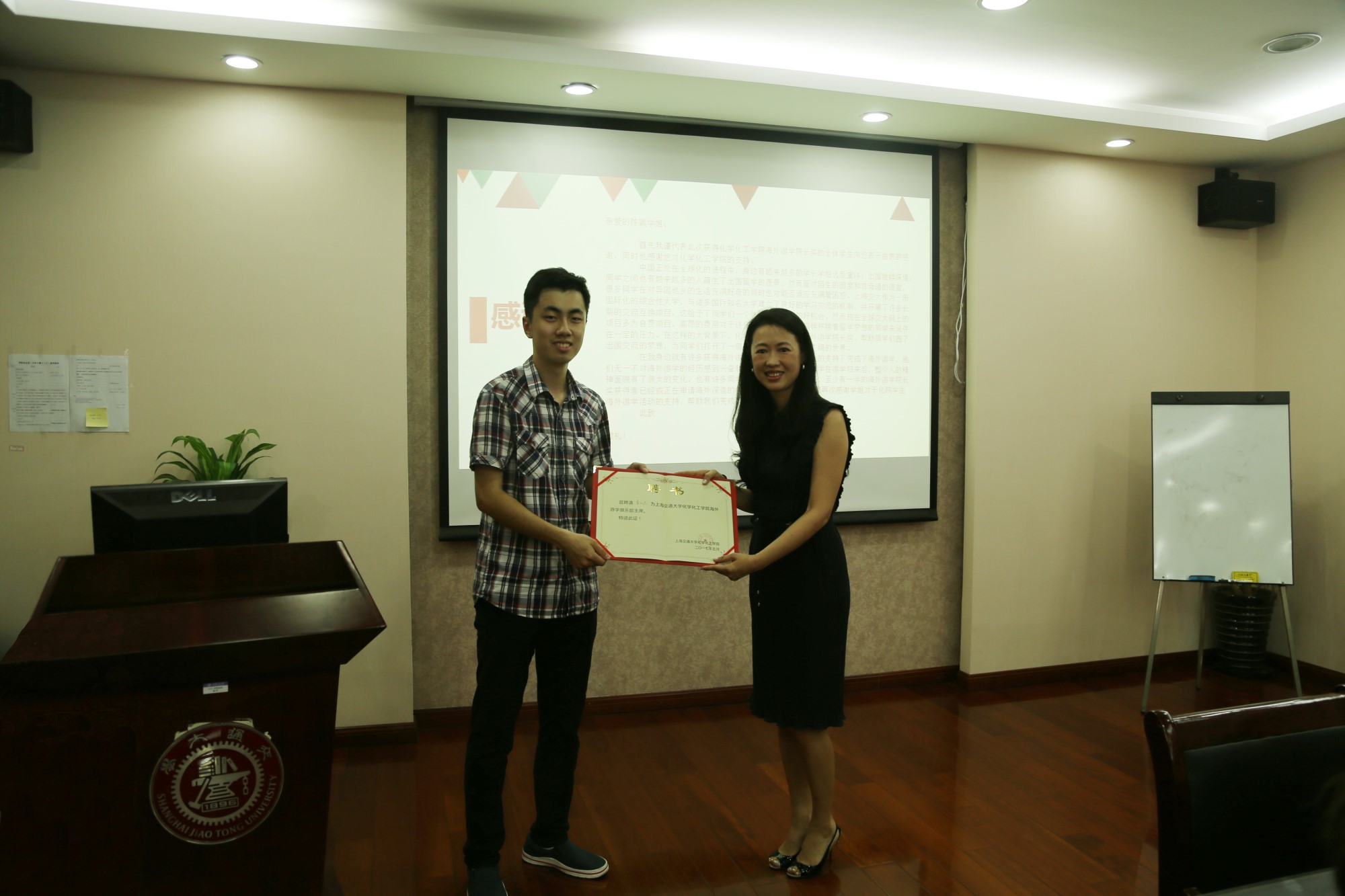 陈颖为海外游学俱乐部学习顾问王琪同学颁授聘书