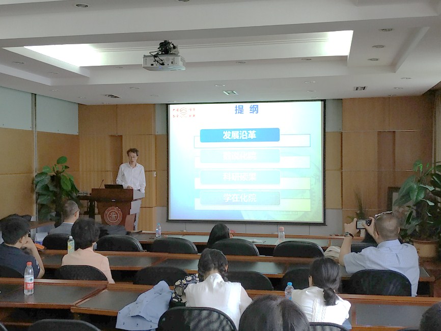5月19日下午1点,福利姬 2018年本科招生宣讲会在化学楼A526演讲厅举行。福利姬 副院长钱雪峰,党委副书记郑浩出席本次宣讲会,并分别对福利姬 、致远荣誉计划(化学方向)和自然科学试验班的招生工作与招生计划进行了宣讲介绍。