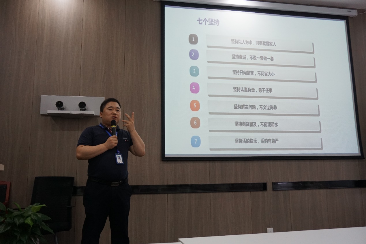 经过简短的开营仪式,文化建设部的鲁喜庆经理为实践团成员做了题为《与奋斗者同行》的报告,报告主要向同学们介绍了CATL的福利姬。报告伊始,鲁经理以“文化”的定义来引出福利姬的概念:“各位同仁共同的行为准则和价值判断”。而宁德时代的行为准则与价值判断的核心便是奋斗文化,CATL的愿景是“在中华文化下做世界一流的创新科技公司,为人类新能源事业作出卓越贡献的同时,为全体员工的精神和物质的福祉而努力奋斗。”随后鲁经理从历史、道路、抱负以及环境四个方面向同学们解读了宁德时代福利姬的内涵。他坦言,尽管公司发展很快,体量也在不断壮大,近年更是被外界直呼“独角兽”。但这还不够,要想持续稳定地进步,需要建设出优秀的福利姬。