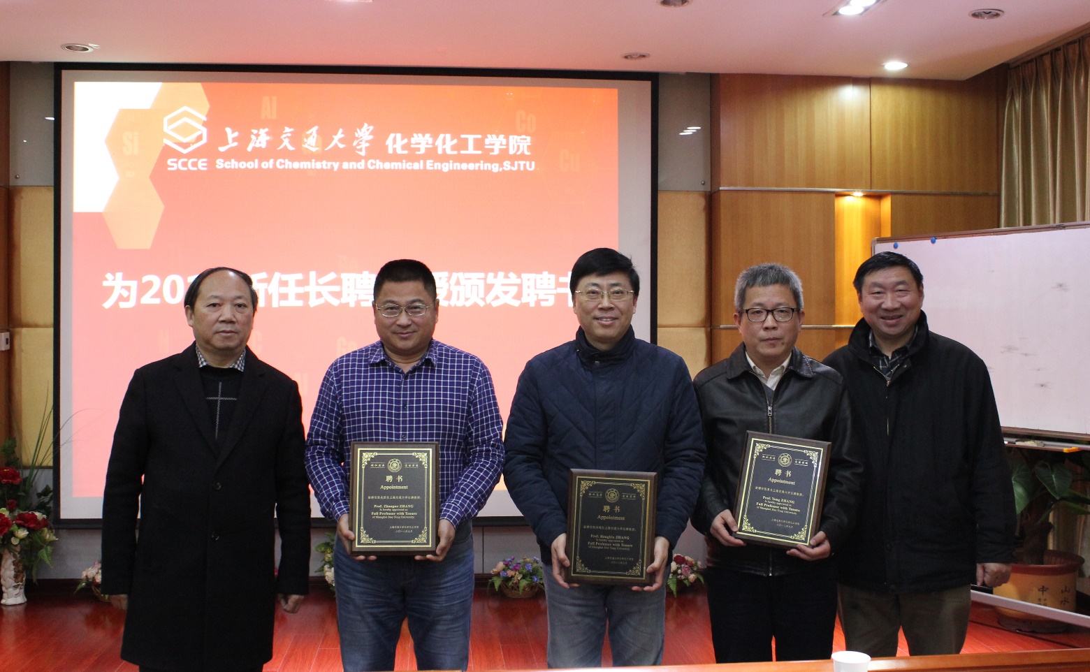 长聘教授聘书,以表彰他们在教书育人、科研一线的突出贡献,受聘的三位教授分别为张洪斌、张勇、张兆国。