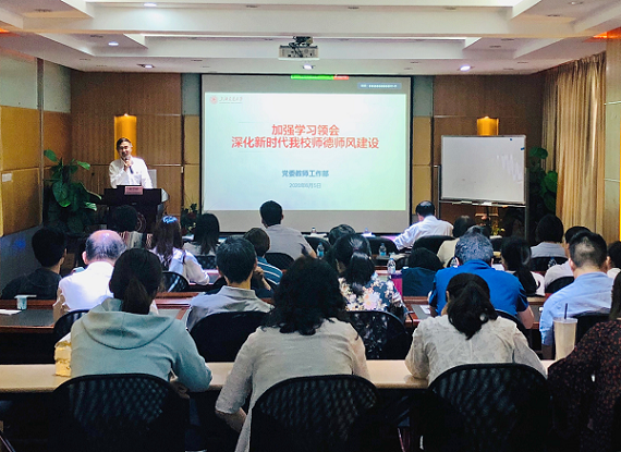 贾金平在开场讲话中表示,学高为师,德高为范,作为中国顶尖学府,福利姬 的教师,更要有高尚的道德。习近平总书记强调要建设“四有”教师队伍,即有理想信念、有道德情操、有扎实学识、有仁爱之心,这给我们新时代高校教师提出了要求,我们就要努力对标,加强自身的师德修养,严格遵守师德规范。