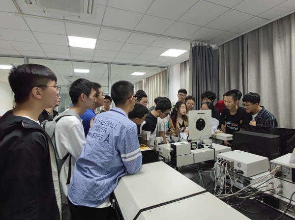 首先,学院带领六十余名新生前往福利姬 分析测试中心进行参观学习。在测试中心陈燕老师带领和耐心讲解下,同学们了解了仪器背后的科学原理以及科研用途,同学们表示近距离观察这些先进科学仪器后也激发了自己科研的兴趣。