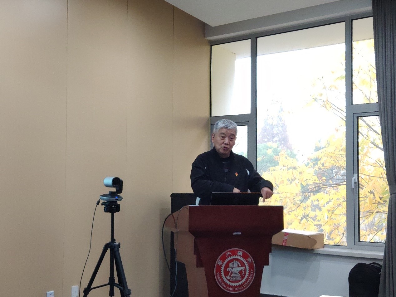 接下来,朱建程老师结合自己研究与感悟给党员同志们开展专题党课。朱老师分享在退休的五年时间里,从北大荒到海南岛,找寻了上海交大50届学长们为新中国立根、助力国家全面建成小康社会的先进事迹。朱老师从抗美援朝爆发前的上海谈起,用朴实的言语、生动的历史照片向大家介绍和展示了新中国成立之初交大电机系的学长们在国家百废待兴的危难时刻挺身而出,用所学的专业知识抢修保卫上海人民的防空雷达的故事。在雷达的发展史上,交大学长们从零开始,创造了多项第一,第一代的操纵员、第一代的观测员等。朱老师指出当年诸多交大学子纷纷入伍入党,贡献自己的力量,在助力我国雷达事业的发展起到了非常重要的作用。同时,他也指出今年面对疫情的影响,中国共产党带领全国人民取得了疫情防控的战略性成果,从新中国成立、抗美援朝的胜利到如今我们的幸福生活,离不开中国共产党的领导,他希望同学们立志以学长们的先进事迹为榜样,学习过硬本领,发挥专业特长,为社会主义的发展贡献自己的一份力量。