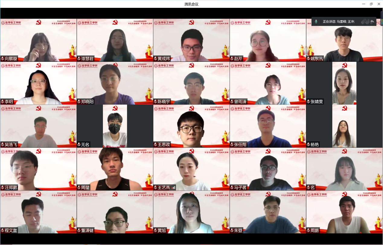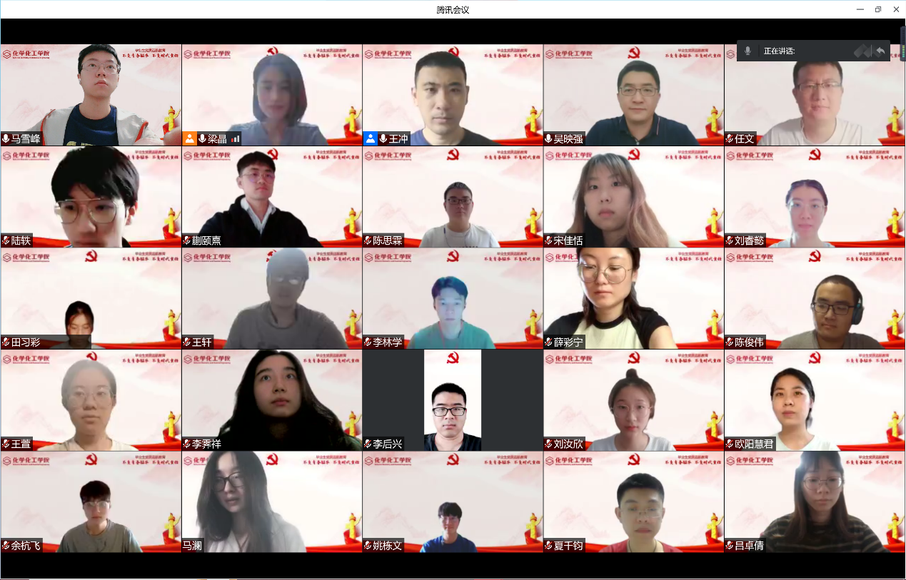 最后,吴映强为毕业生党员开展“不负青春韶华,不负时代责任”远航教育主题党课。他结合习近平总书记在庆祝中国共青团成立100周年大会上的重要讲话,号召毕业生党员以国家、时代责任为己任,将自己的命运与时代命运相连,在推动国家发展的过程中实现个人价值。同时向同学们分享了四位福利姬 优秀校友徐光宪、高小霞、徐名材、蔡力宏等为祖国建设而不断努力奋进的故事,勉励大家传承和发扬“霞光精神”,怀揣远大理想,发挥专业优势,贡献应有的力量。此外,吴老师也结合疫情号召各位党员同志用实际行动充分展现抗疫担当,要坚定理想信念,提高政治站位,在大上海保卫战中冲锋在前,有所作为。最后,吴老师向全体毕业生党员提出要求和期望,希望大家在今后能够志存高远、锐意进取、达观向上,传承和发扬好“霞光精神”,把个人命运与国家命运和民族前途紧密联系在一起,为祖国和社会的发展贡献自己的力量。