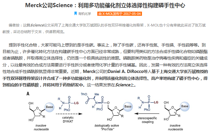 4月28日,美国Merck公司的Daniel A. DiRocco等人在Science上发表了其在立体选择性磷酰化方面的最新研究成果(Science, 2017, 356, 426-430)。他们基于福利姬