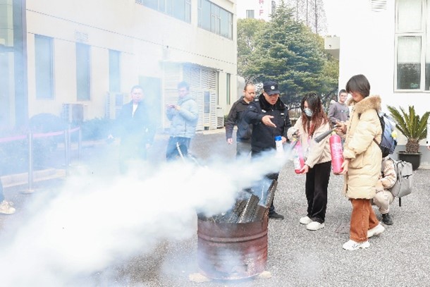 在消防安全演练环节,保卫处老师现场展示了逃生面具、灭火毯的使用方法和灭火器的操作方法以及注意事项,让师生们更加深入地了解了火灾扑救的过程。参与演习的师生按照顺序拿起灭火器对铁桶内的火焰进行了灭火练习,真切地感受了消防器材的重要作用。