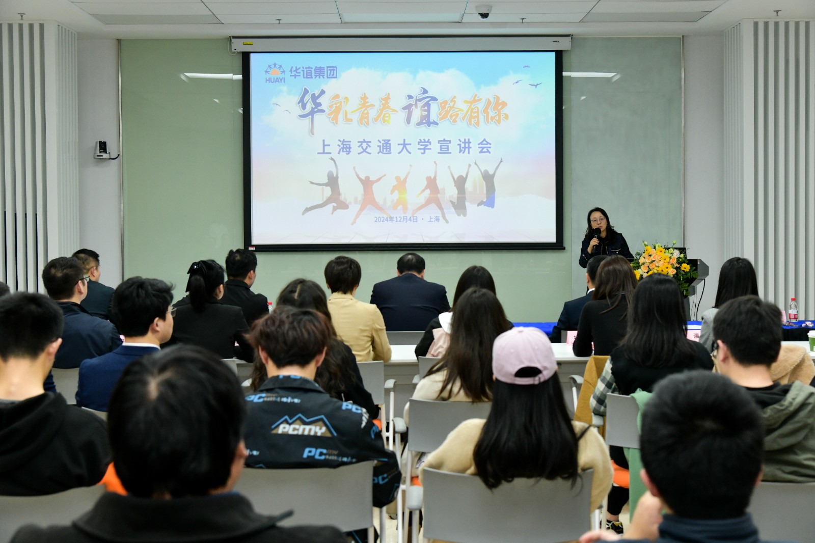 颁奖典礼结束后,华谊集团在转化医学大楼100号会议室举办了“华彩青春,谊路有你”校园宣讲会,六十多名同学参会,现场气氛热烈。