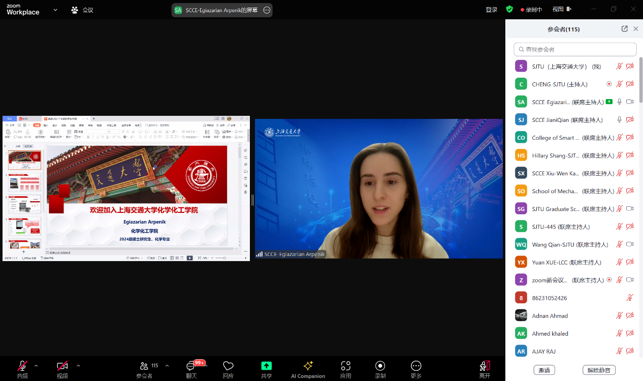 宣讲会上,学院研究生管理团队还邀请了两位优秀的国际研究生代表进行分享。来自俄罗斯的硕士生Egiazarian Arpenik用流利的中文生动讲述了她聆听中文课程的体验,来自马来西亚的博士生Kang Xiu-Wen分享了她毕业后继续在学院从事博士后科研工作的经历。两位学生的分享让与会国际生们对学院的国际化学术氛围有了更深入的了解。