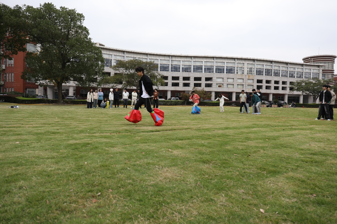 接下来,培训师带领同学们开展大脚丫的培训游戏,同学们需穿着特制鞋子完成接力,略显“笨拙”的鞋子让奔跑多了几分趣味,也更考验队员间的衔接配合。跑道旁的同学自发组成“加油团”,为队友呐喊助威,现场洋溢着青春的朝气与团结的温暖。同学们都热情高涨地投入到游戏中,在各自团队内紧密配合,每个人都希望自己的队伍能够在这场速度与策略的较量中脱颖而出,赢得最终的胜利。