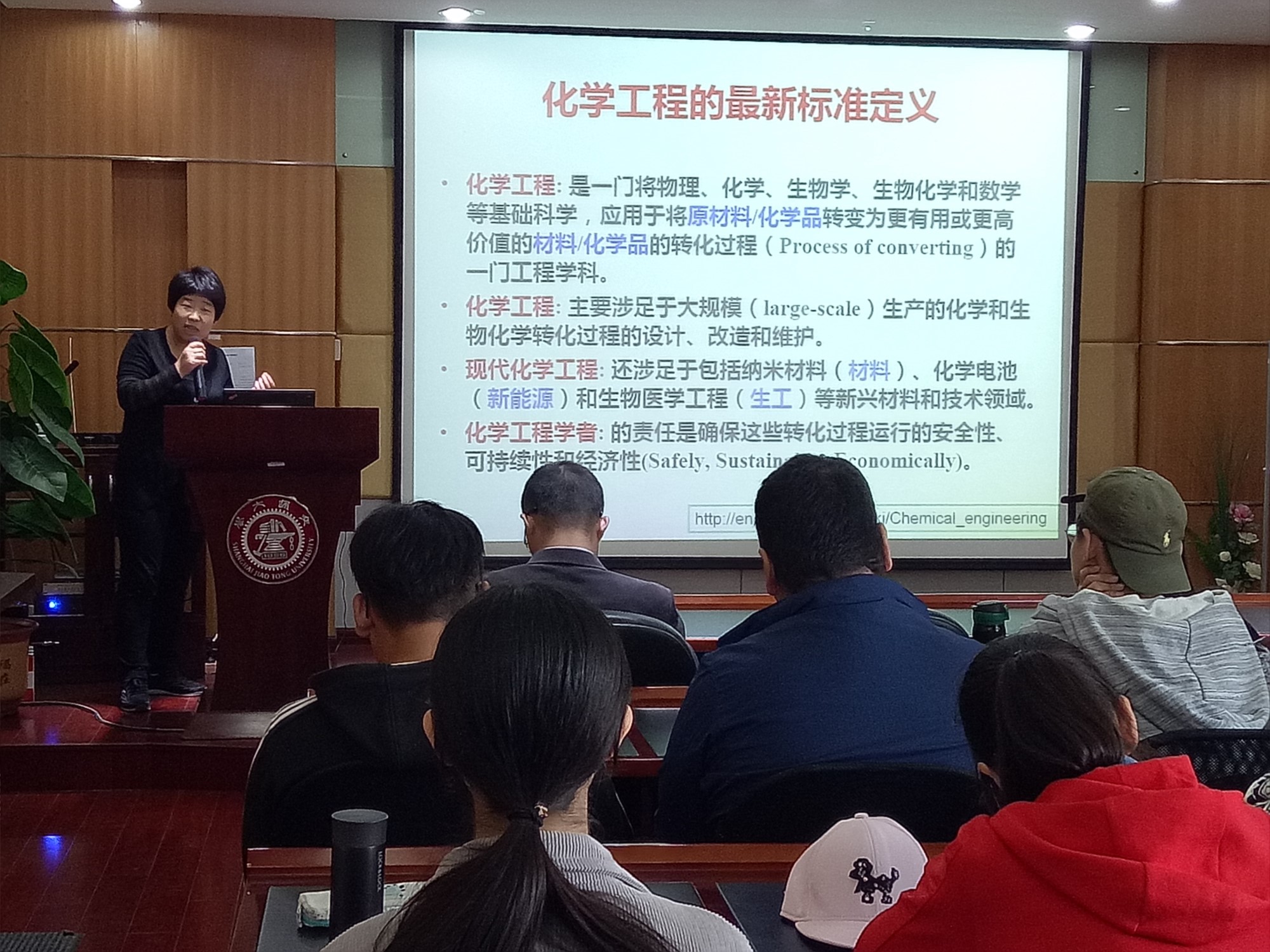 随后化工系原鲜霞老师向大家展示了化工系不一样的风采。她从化学工程学科的内涵切入,化工作为既基础又综合且应用性最强的一门学科,课程设置全面、科学,就业前景广阔。