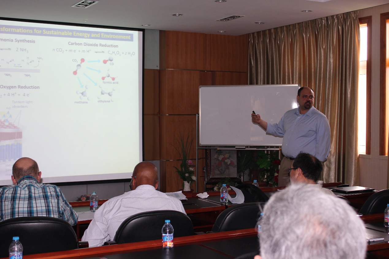 达成学者互派、学生交换的合作意向之后的第二次到访。学院院长朱新远教授,副院长钱雪峰教授、郑思珣教授,部分特聘教授以及化学系年轻教授参加会见。双方在化学楼A楼518会议室进行了双边合作的研讨会。会议由副院长郑思珣教授主持。