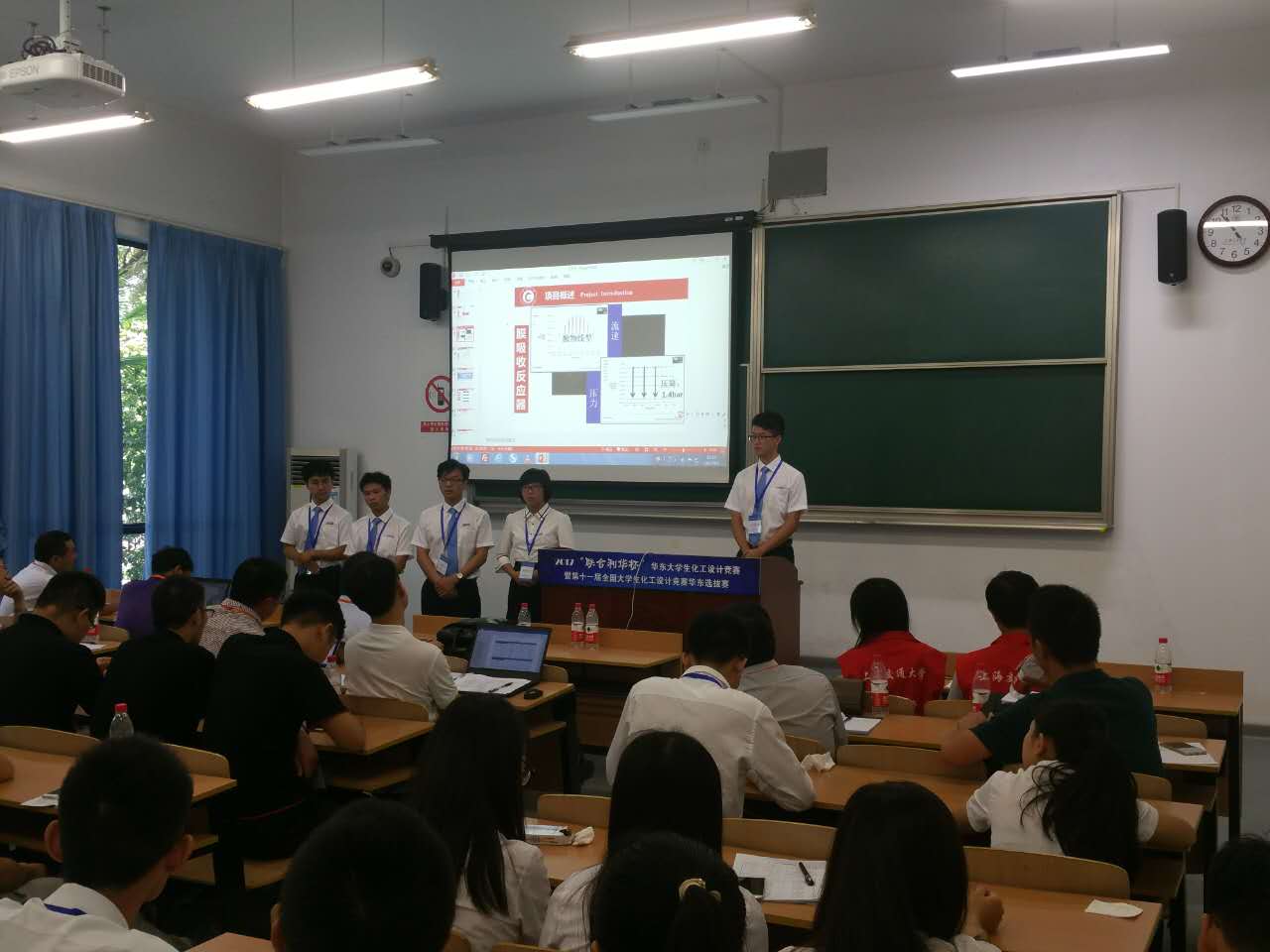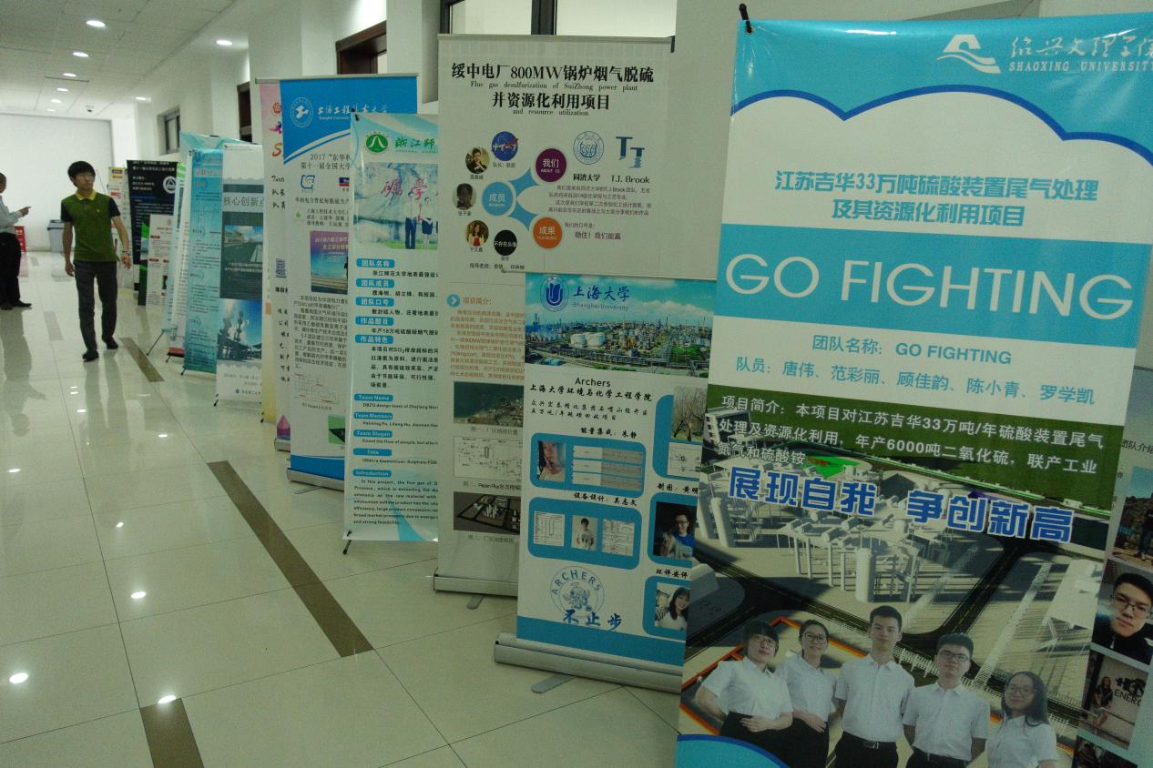 开幕式结束后,各参赛队进入了紧张的预赛。各参赛队根据含硫工业废气治理这一选题,精心准备了设计方案。各个队伍穿着整齐,声音洪亮,飒爽英姿,展现出了一位工程师该有的气质。由参赛人员设计的竞赛海报也格外引人注目。