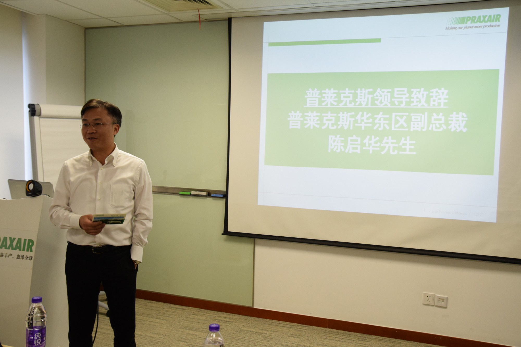接下来,普莱克斯华东区副总裁陈启华先生为大家带来了实用的职业建议。通过与同学们展开互动,让同学们提出问题,然后结合自己二十五年的工作经历,为同学们答疑解惑。鼓励同学要不断学习,打开眼界,勇敢地表达自己的想法,走好自己的职业发展之路。