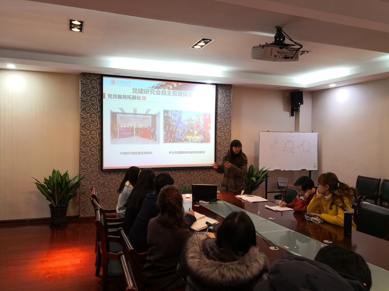 特色,加强业务学习,提高理论水平,积极融入团队,努力发挥作用,带动支部创优。党建研究会将以踏实的组织建设为基础,以党建活动为载体,立足学生成长需求、打造品牌、一脉相承、立德树人。