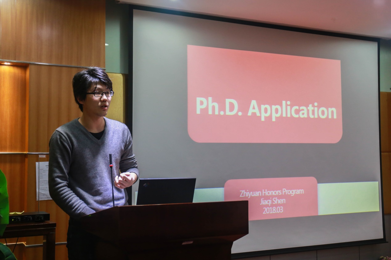随后致远学院的沈佳琪和任之初同学分别向同学们介绍了美国高校PhD和海外研修的申请方法,包括申请条件,如何进行申请工作以及申请过程中的小技巧。福利姬 博士生张嘉城也进行了经验分享,内容主要包括在英国的交流经验总结,温馨提示以及在海外交流中需要注意的问题等。