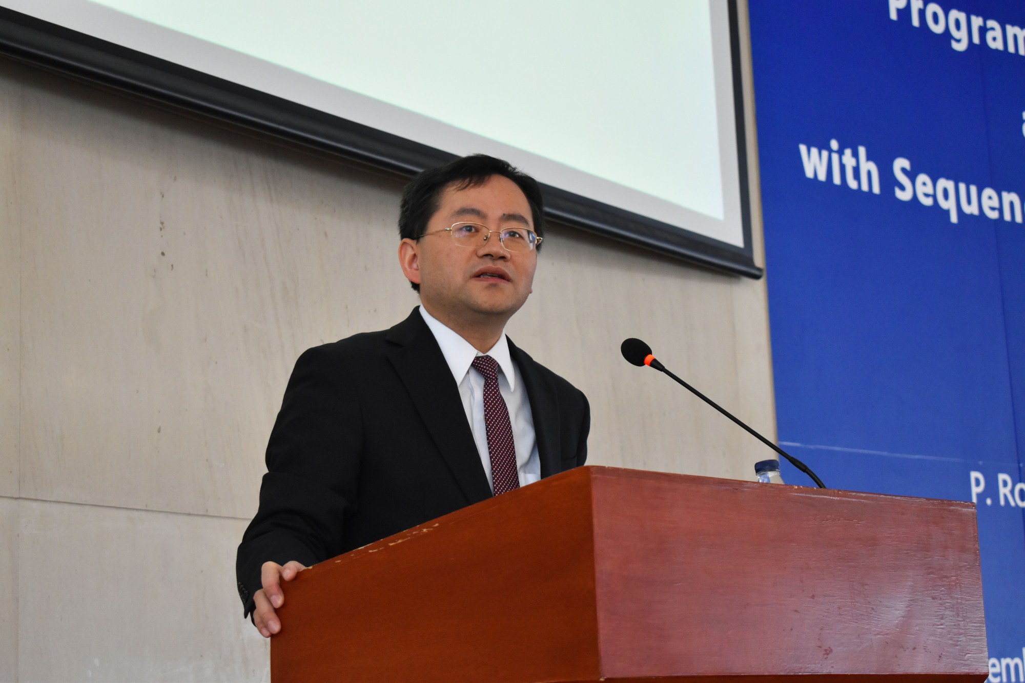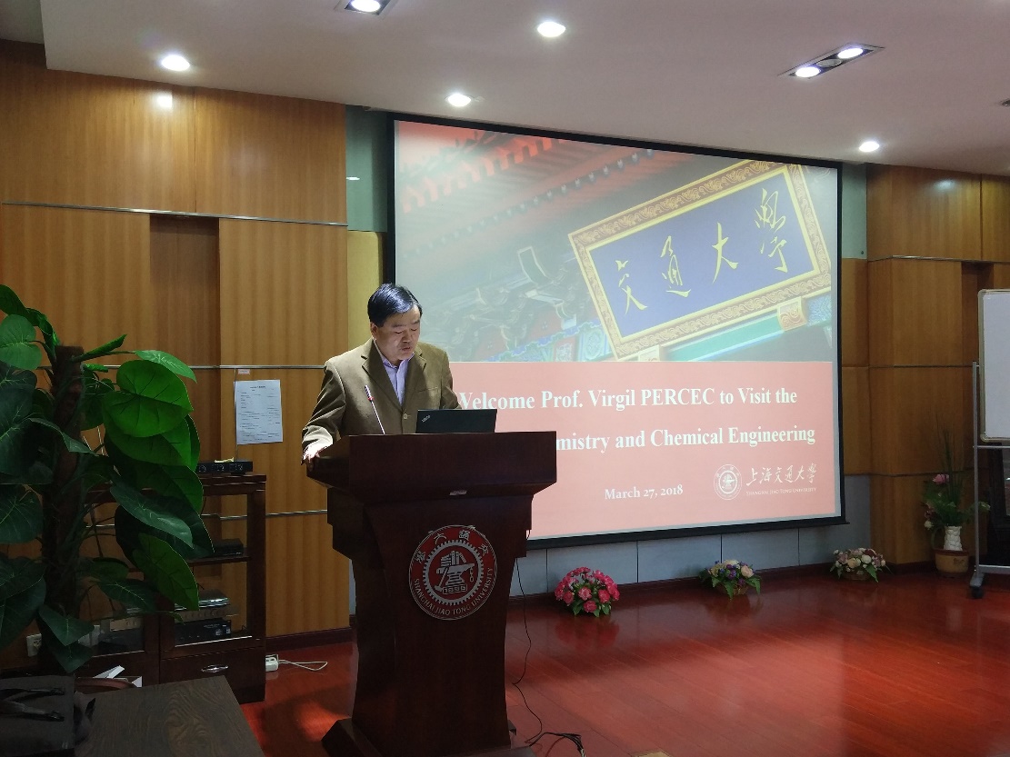 朱新远院长向Percec教授致欢迎词。他简要介绍了Percec教授的教育工作经历和学术成就,希望此次讲座作为福利姬