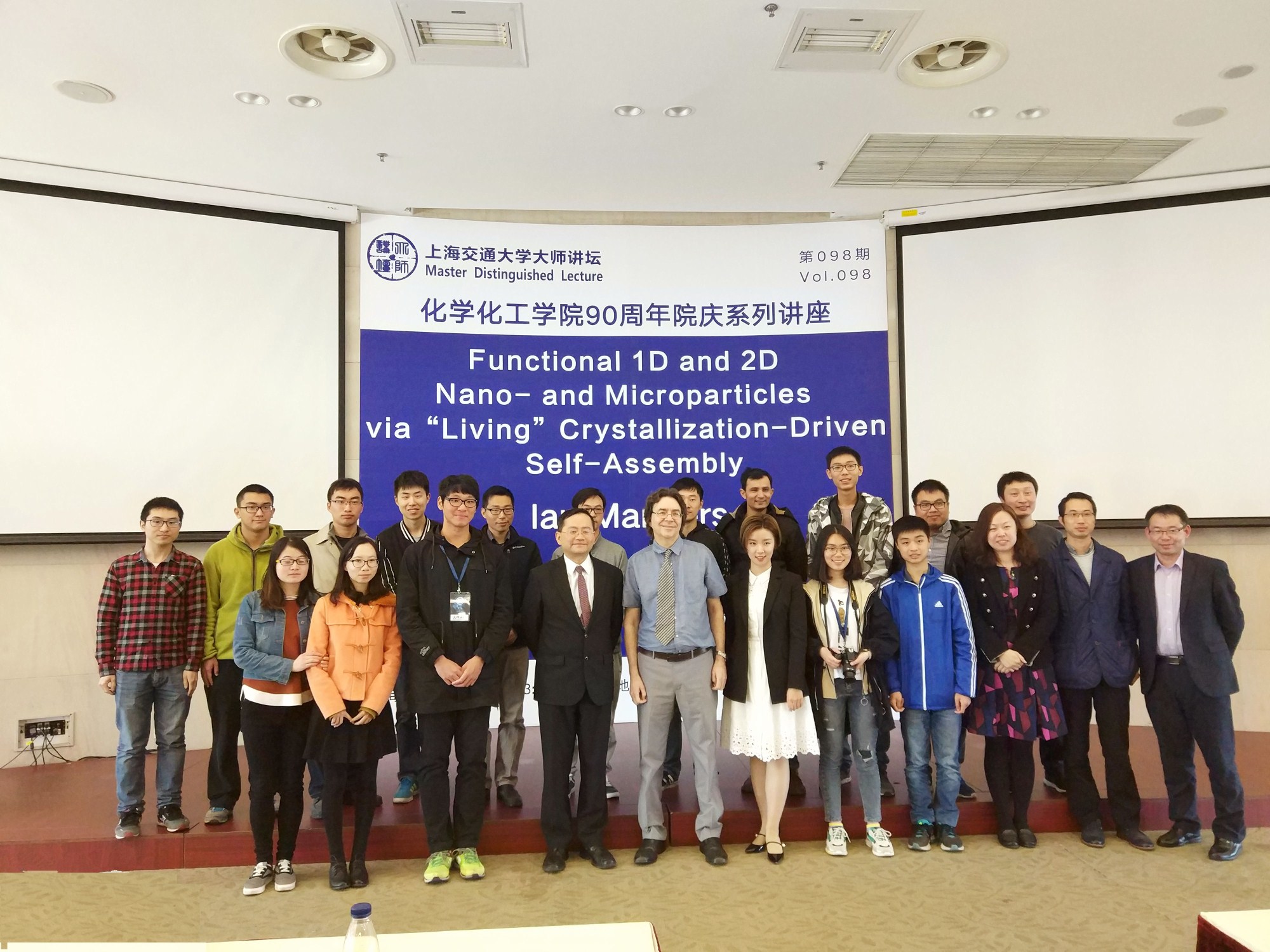 4月8日,英国皇家学会院士、加拿大皇家学会院士、欧盟玛丽居里讲席教授、英国布里斯托大学Ian Manners教授在图书信息楼八楼报告厅做客第98期大师讲坛,为交大师生带来题为“Functional 1D and 2D Nano- and Microparticles via ‘Living’ Crystallization-Driven Self-Assembly”的精彩报告。