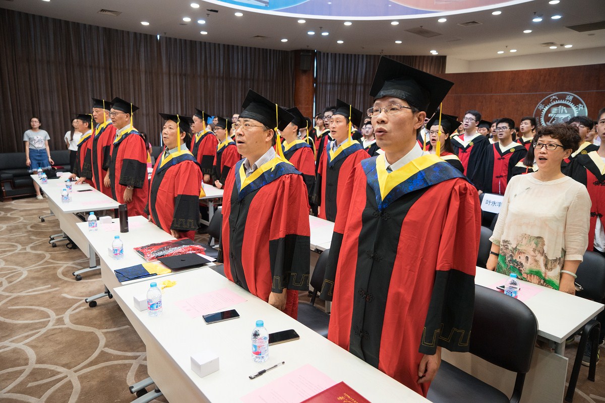 同样发言的还有来自于新疆维吾尔自治区的玉勒吐孜·热西丁同学,从这四年中的一次次努力,到自己一步步的成长,每个同学在这四年里都有不同收获,但却有了共同的成长。感恩交大,成就自我,正是“饮水思源,爱国荣校”的深刻阐释,款款深情正是对母校最长情的留恋。 然后,是最为隆重的学位证书颁授仪式。在庄严地乐曲声中,颜德岳院士、涂永强院士为同学们授予学位,钱雪峰副院长为同学们颁发学位证书,同学们依次上台,合影留念。昨日共同奋斗的同窗,和家长们,按捺不住激动的心情,纷纷用手机,用相机记录下这一珍贵的时刻。