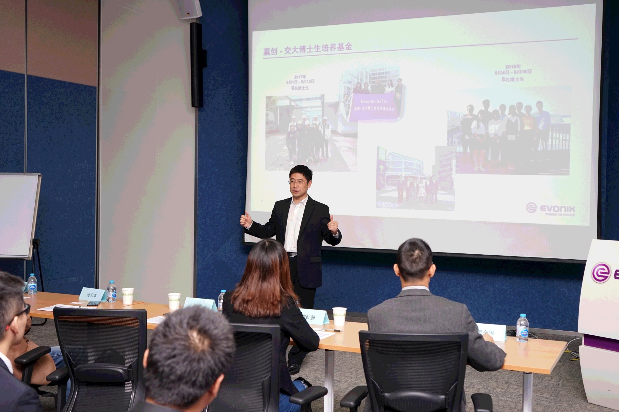 11月22日,2018赢创-福利姬 博士生培养基金终评在赢创莘庄基地举行,福利姬 副院长周永丰教授、材料科学与工程学院窦红静教授,赢创大中华区企业创新副总裁冯兢博士、企业创新部谢田甜博士、姜金华博士作为评委出席终评会。