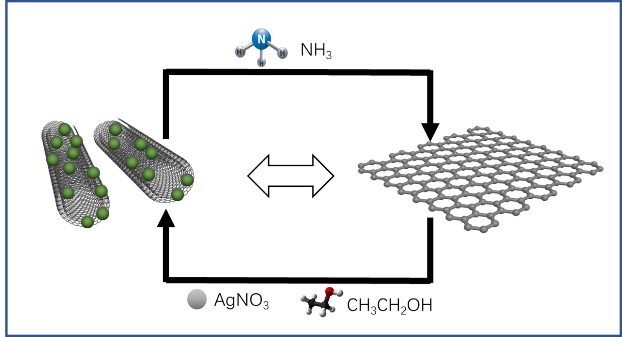 该团队进一步研究发现,在一定条件下,所形成的石墨烯一维纳米卷可以重新可逆展开成为石墨烯,实现了二维石墨烯与一维石墨烯纳米卷之间的相互可逆转化。该成果为从二维材料构建一维材料提供了新思路,为石墨烯的稳定储存和定向应用以及一维石墨烯卷的理论研究和实际应用打下了基础。该工作以Reversible conversion between graphene nanosheets and graphene nanoscrolls at room temperature为题发表在《RSC Advances》期刊(2018, 8, 18, 9749-9753.)