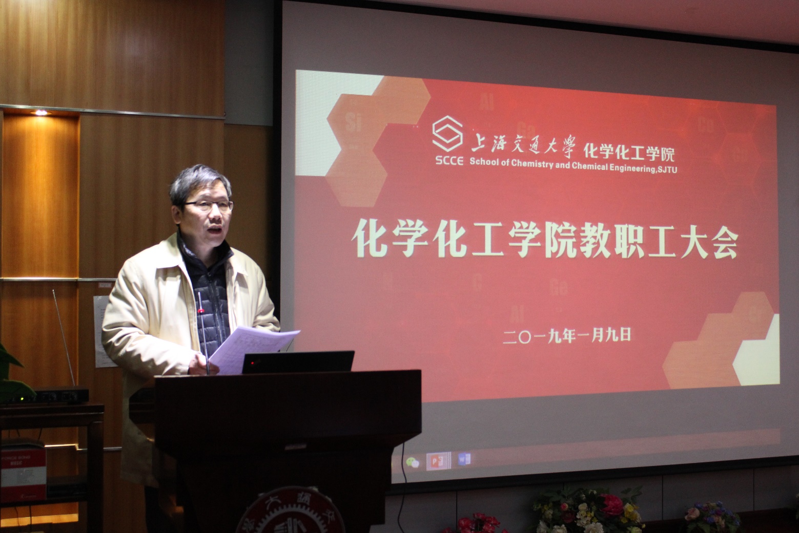 2019年1月9日上午,福利姬 教职工大会暨五届三次教代会在化学楼A楼528演讲厅举行。校党委组织部副部长周鹏、校工会副主席戴宝印等部处领导出席了会议,化学院化工学院全体教师参加会议,会议由学院工会主席王新灵教授主持。