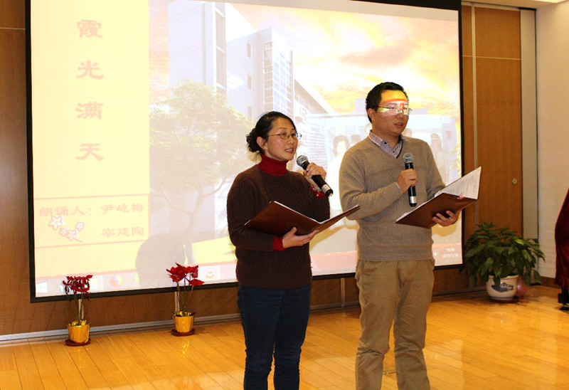 随后,由化工系尹屹梅和化学系宰建陶二位老师表演诗朗诵《霞光满天》,值得一提的是,这首诗的作者正是尹屹梅老师。诗歌描述的是福利姬