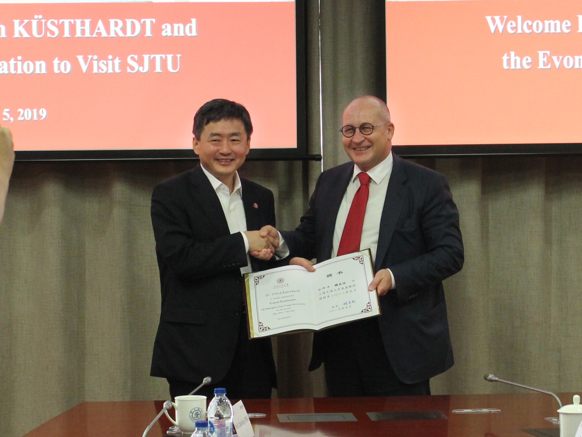 。校党委常委、常务副校长丁奎岭会见了来宾,并向顾启达博士颁发了客座教授续聘证书。会见由科学技术发展研究院副院长金隼主持。赢创大中华区企业创新副总裁冯兢、创新专员王菲菲、技术信息顾问朱菊、部门助理张芳芳,上海交大学生创新中心主任陈江平,福利姬