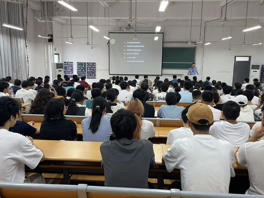 特邀淮南市公安局山南新区分局法制科二级警长王远,在天工105教室为2025级新生举办了一场防范网络电信诈骗专题讲座,为同学们上了一堂生动的“大学安全第一课”。