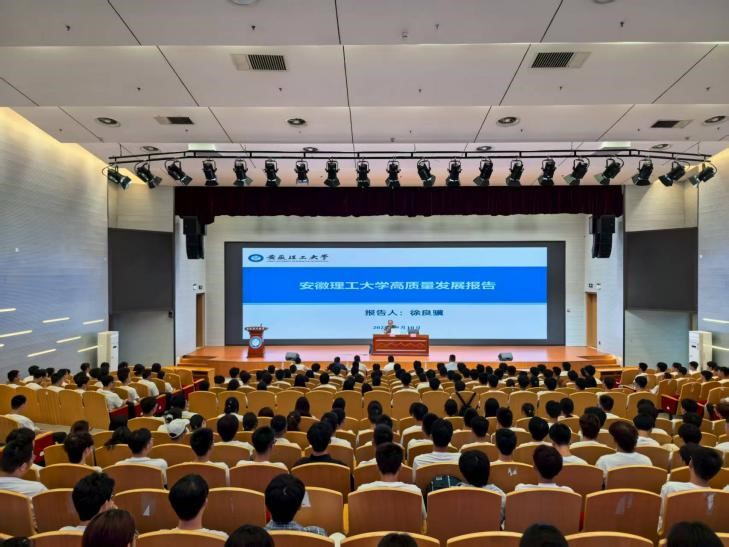 报告会上,徐良骥从校史校情、发展成果和未来规划三个方面进行了深入阐述。他详细介绍了学校80年来的办学历史和优良传统,重点讲述了学校在学科建设、专业优化、人才培养、社会服务等方面取得的显著成就,目前学校正紧紧围绕"双一流"创建目标,深入实施"三步走"发展战略,推深做实“四个融入”发展战略,通过优化学科专业布局、加强师资队伍建设、推进产教融合等举措,全面提升办学质量和水平。