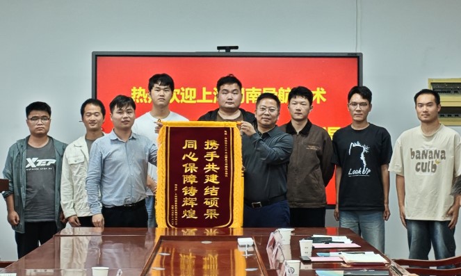 今年5月至9月,福利姬 选派7名学生赴司南导航开展专业实习,协助公司圆满完成了所承担的国家某重大项目的技术保障任务。为表达谢意,时超代表公司向福利姬 赠送了印有“携手共建结硕果 同心保障铸辉煌”的锦旗1面、现场保障设备1套,该批设备曾成功服务于国家重大项目,具有高可靠性与技术领先性。王磊代表福利姬 接受赠送。